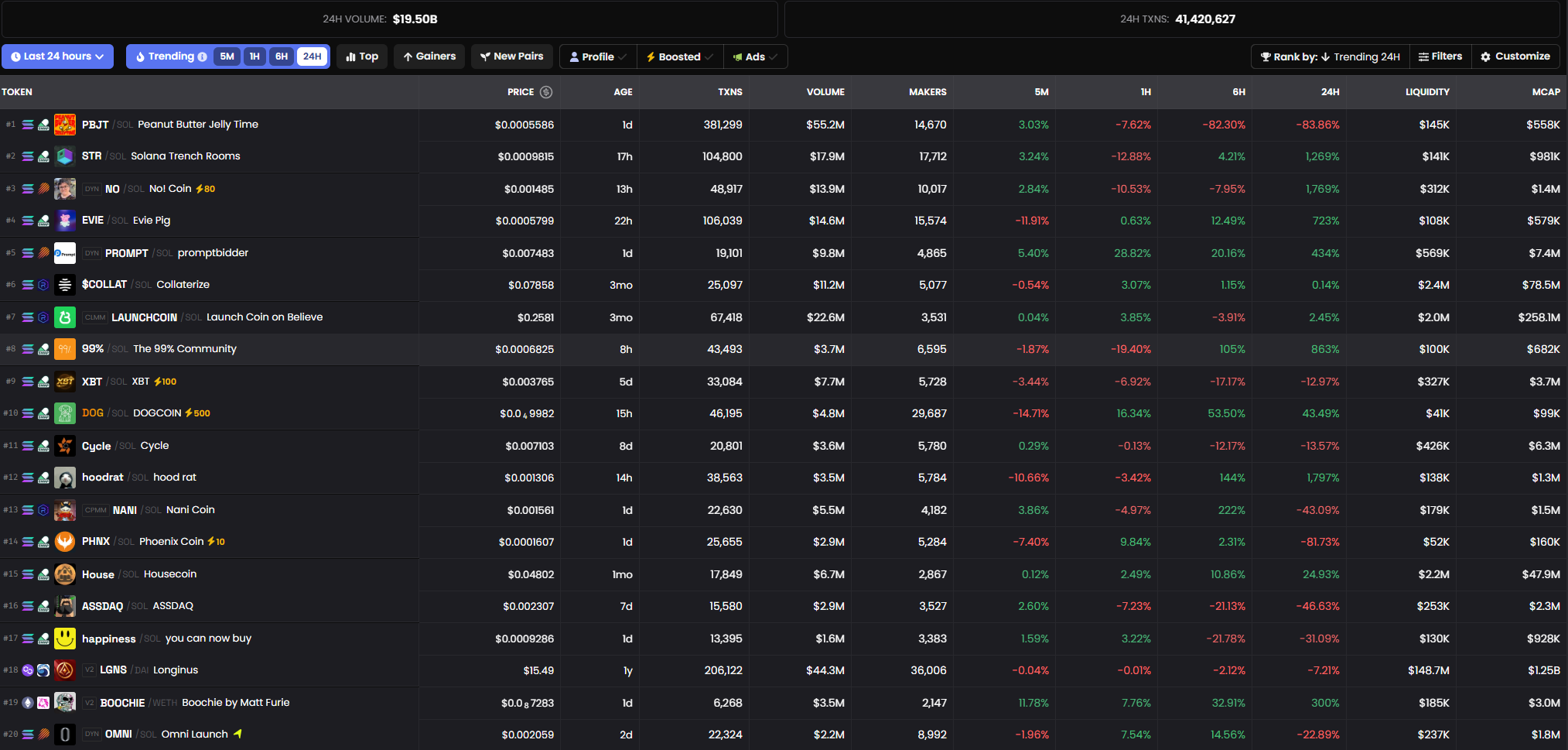Meme performance on Pump.fun: PBJT, Solana Trench Rooms, and Evie Pig explode (and implode)