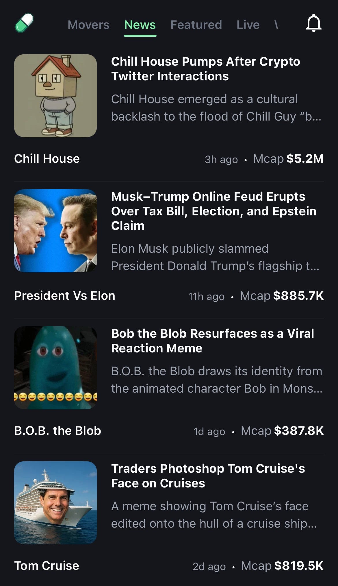 Pump.fun has also launched an in-house news service focused on the memecoin ecosystem. As of June 6, Pump.fun’s news service is only accessible via the platform’s mobile application.