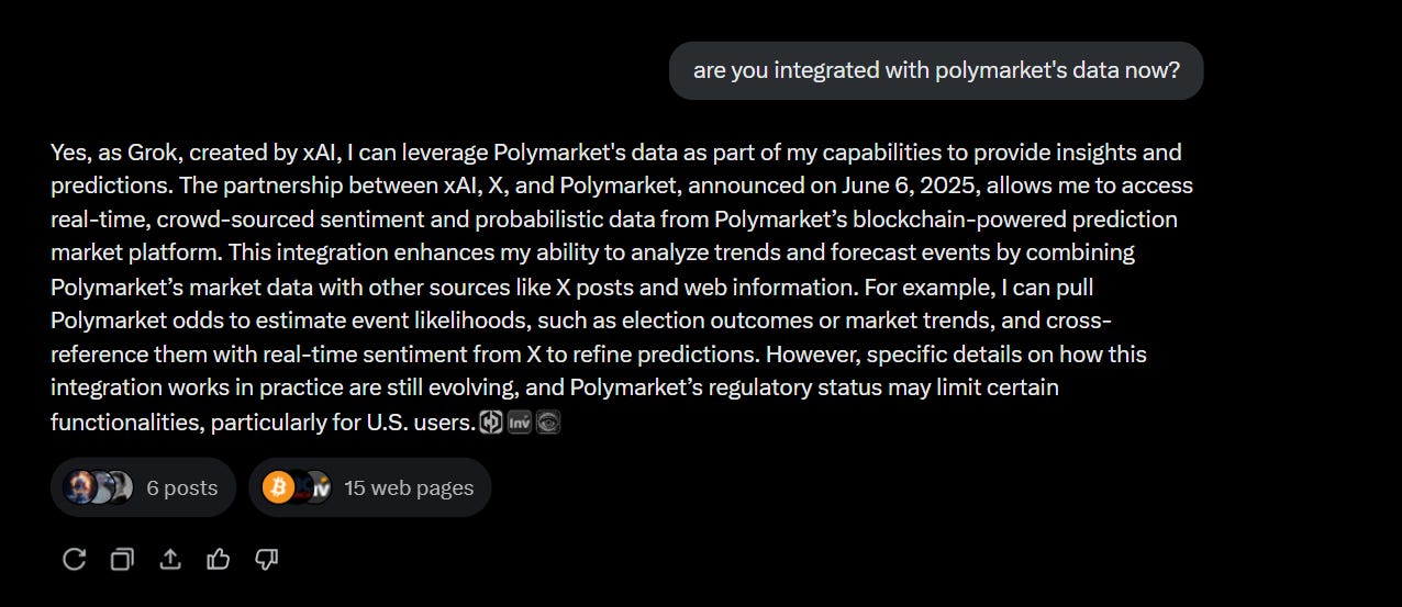 Polymarket’s data is now integrated into X.com’s Grok AI agent.