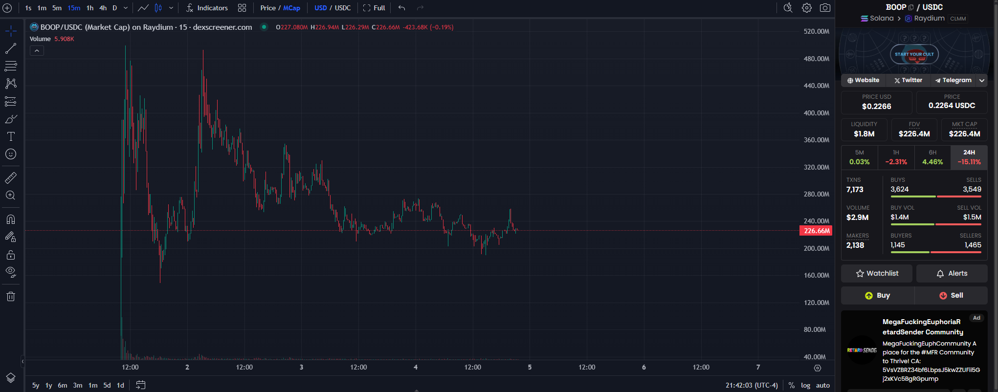 As of May 4, BOOP and Boopa trade at market capitalizations of roughly $300 million and $5 million, respectively, per DexScreener.