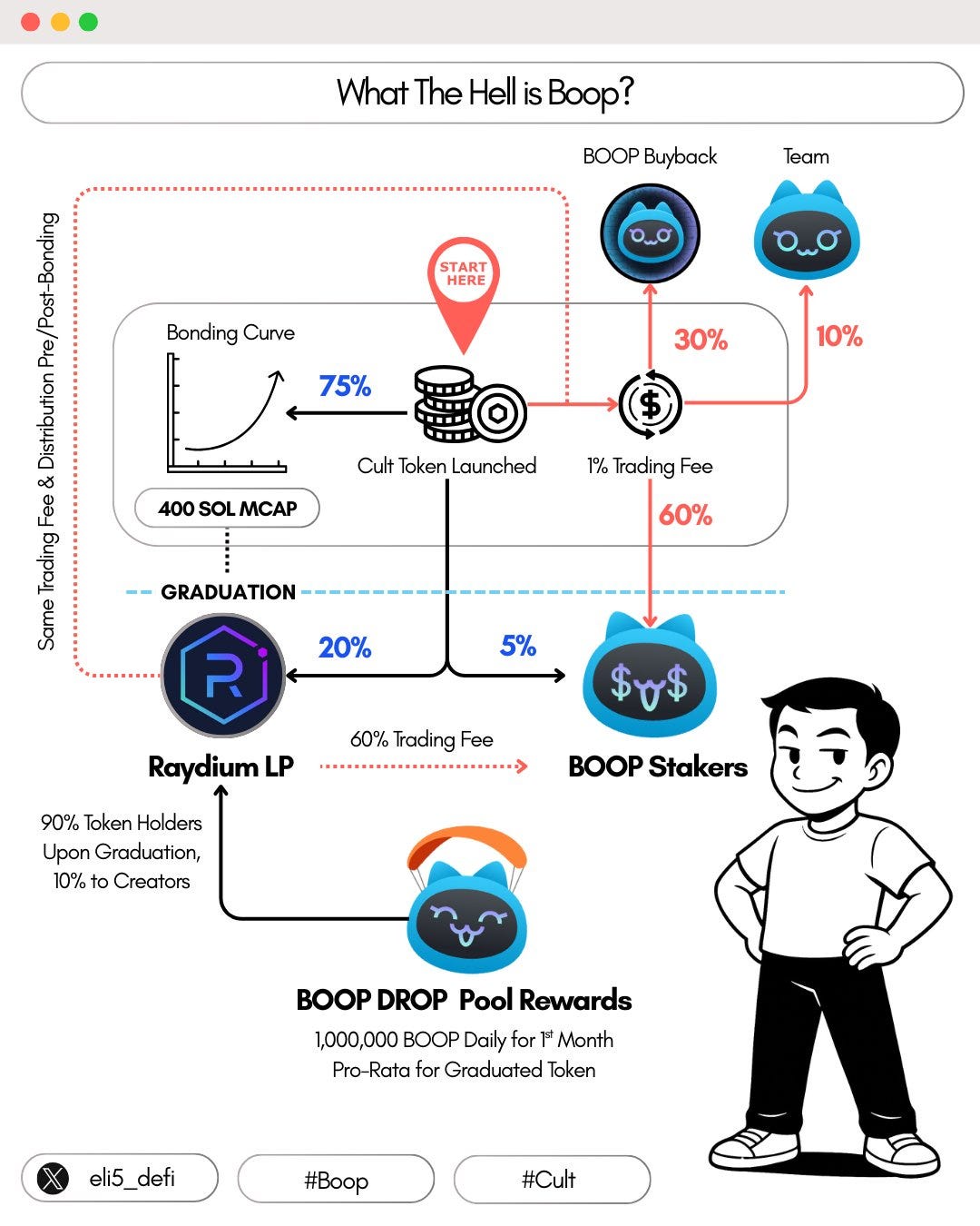The BOOP was subject to 30-day time-locks, but could vest sooner under one condition: Influencers needed to launch Boop-native memecoins themselves.