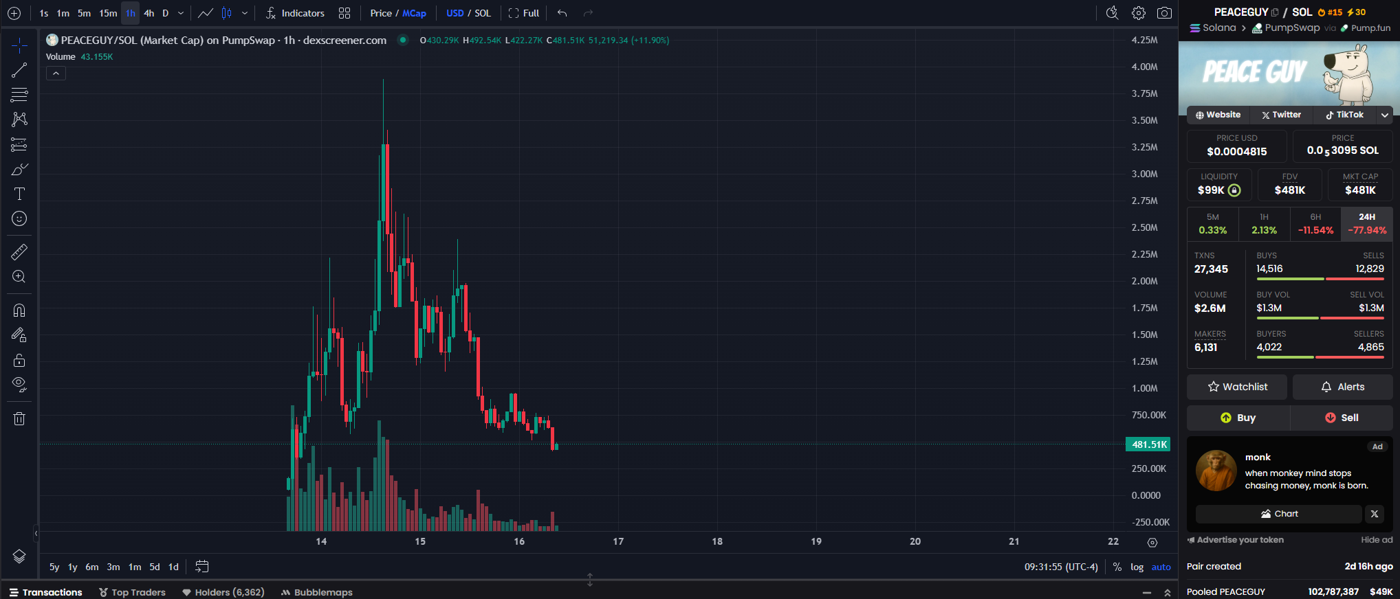 Meanwhile, Just a peace guy (PEACEGUY) surged to highs of almost $4 million within 24 hours of launching on June 13.
