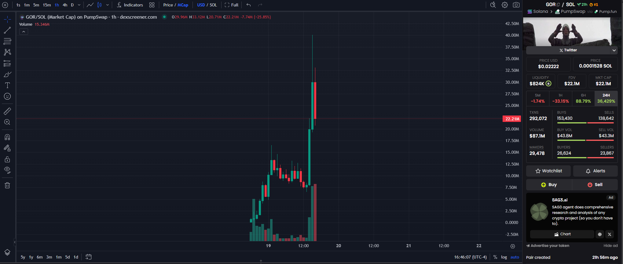 Within 24 hours, GOR climbed from around $1 million to over $40 million in market cap, according to DexScreener.