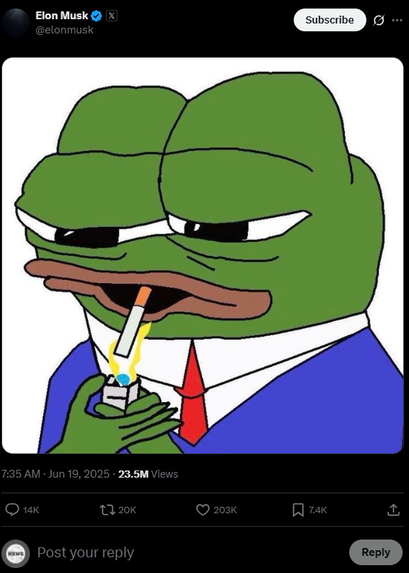 Elon tweet fuels Pepe–Apu coin war
