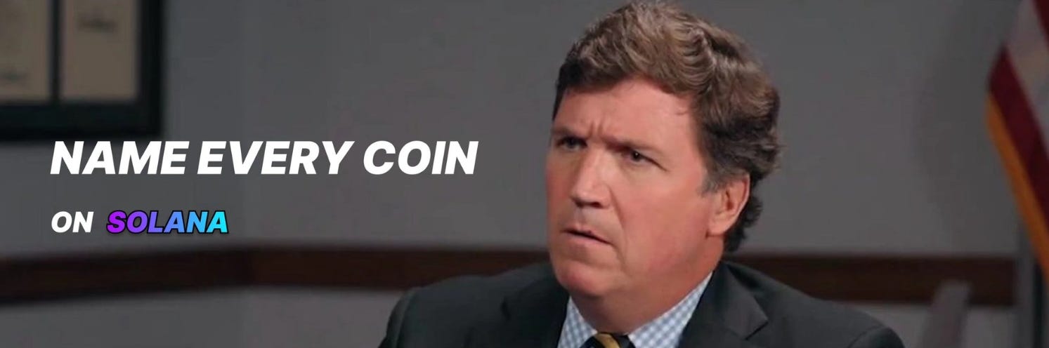 Name Every Coin (NameEvery), a coin tied to the “Name every ___” meme template made famous by a Tucker Carlson interview with Senator Ted Cruz, briefly topped $800,000 in market cap before retracing. The token has since stabilized around $300K.